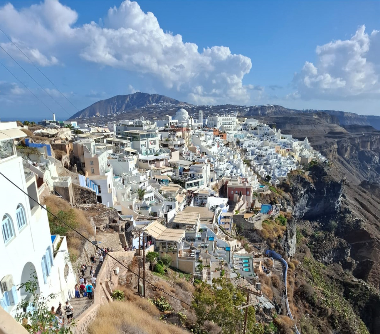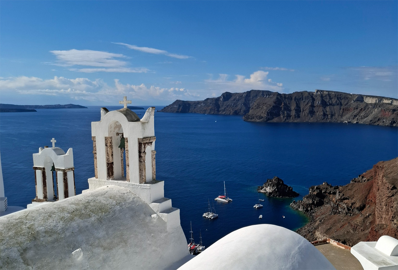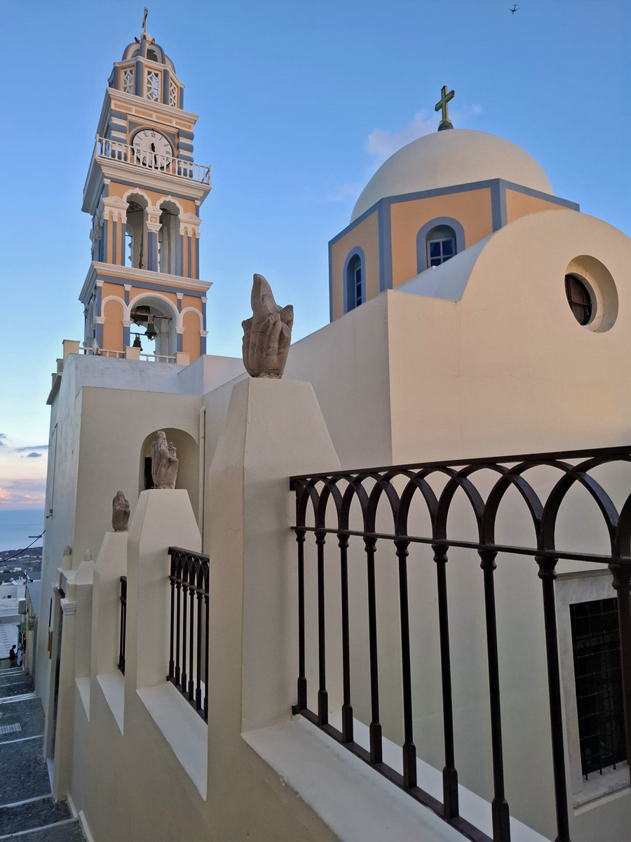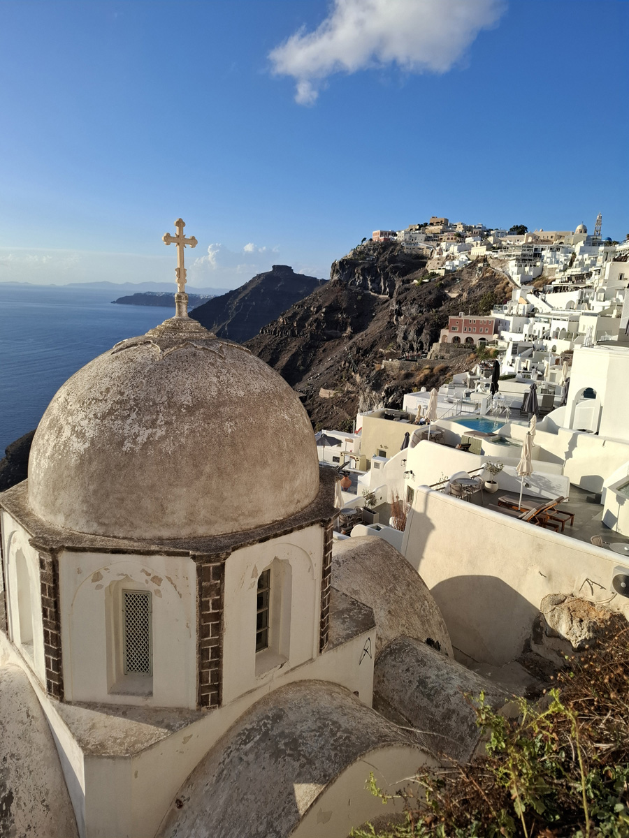 Another view of the caldera (from Oia orthodox church) Remembrance of the good old days ... Catholic cathedral in Fira town