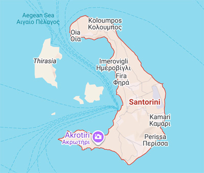 Oia with windmill and orthodox curch in the background |